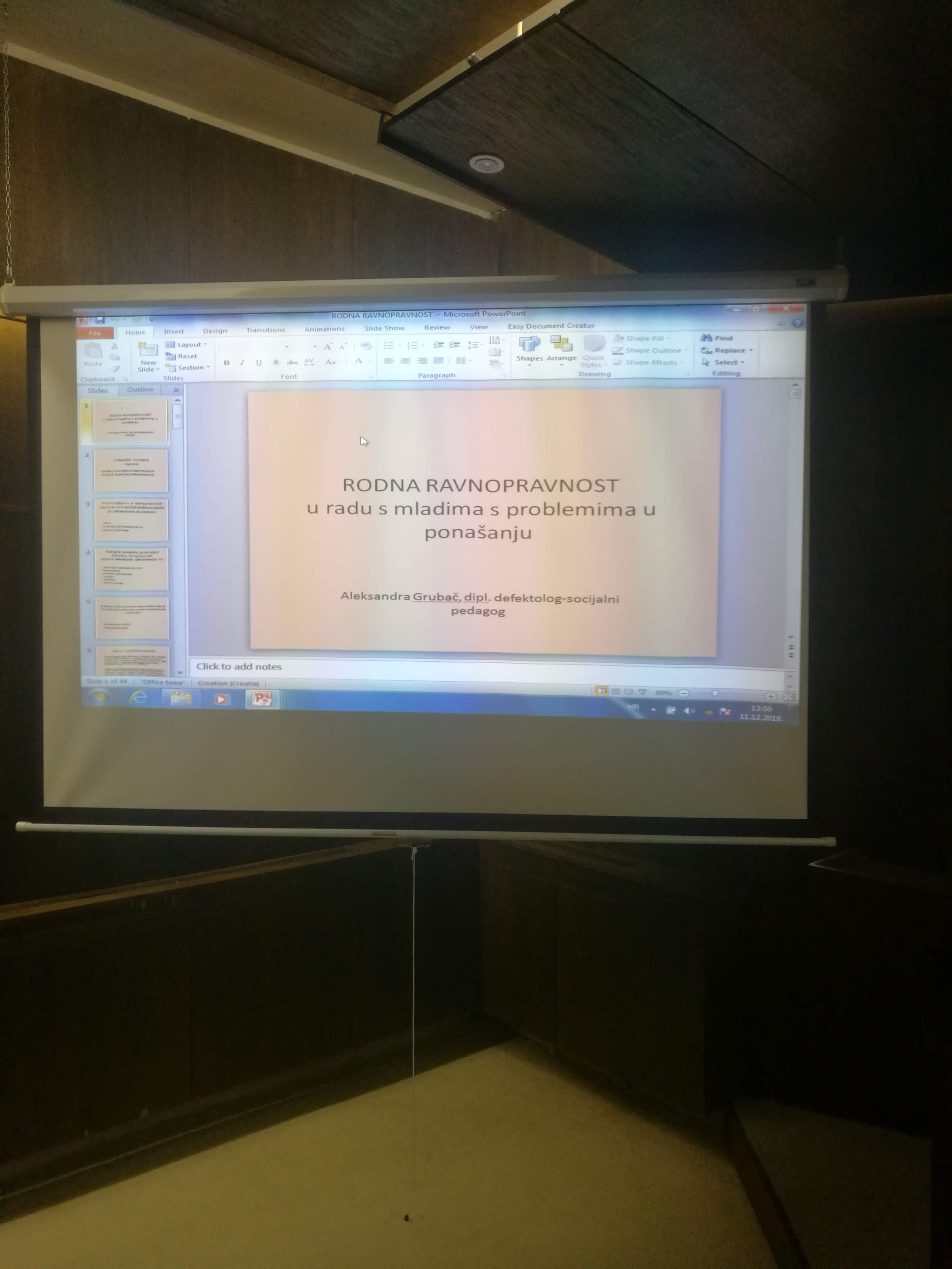 Putem interaktivnog predavanja i radionica obuhvaćene su teme rodne ravnopravnosti u radu s mladima s problemima u ponašanju te potrebe djece s teškoćama u razvoju.